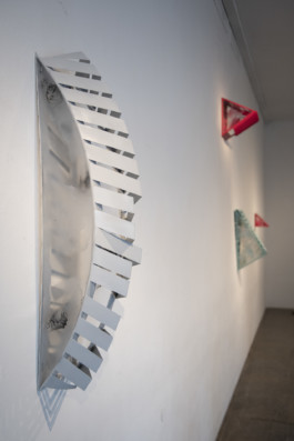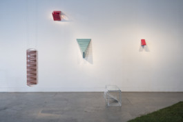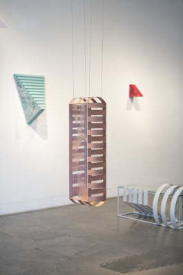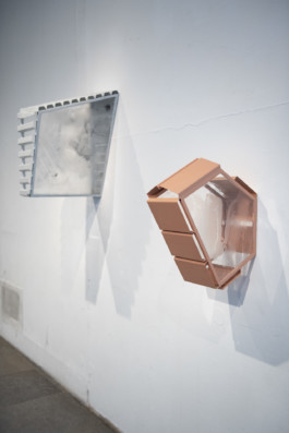 Body of work, 2019, Haus der Kunst, München. Materials: Steel, lacquer, acrylic glass, kefir, coal, beet root, rhubarb, grapefruit, spirulina