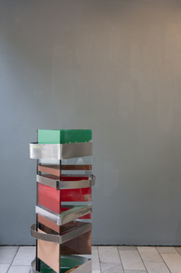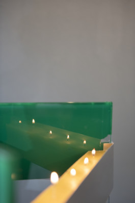 This is not a birthday Party, 2019, Salon Babette, Berlin. Materials: glass, lacquer, aluminium, wax, cream, chocolate