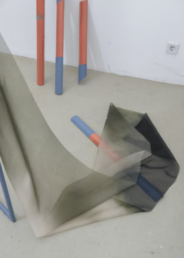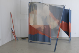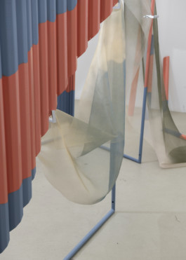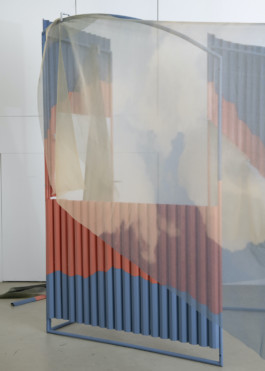 Volatile Reminiscence, 2020, Art Biesenthal. Materials: Steel, laquer, printed silk, aluminium